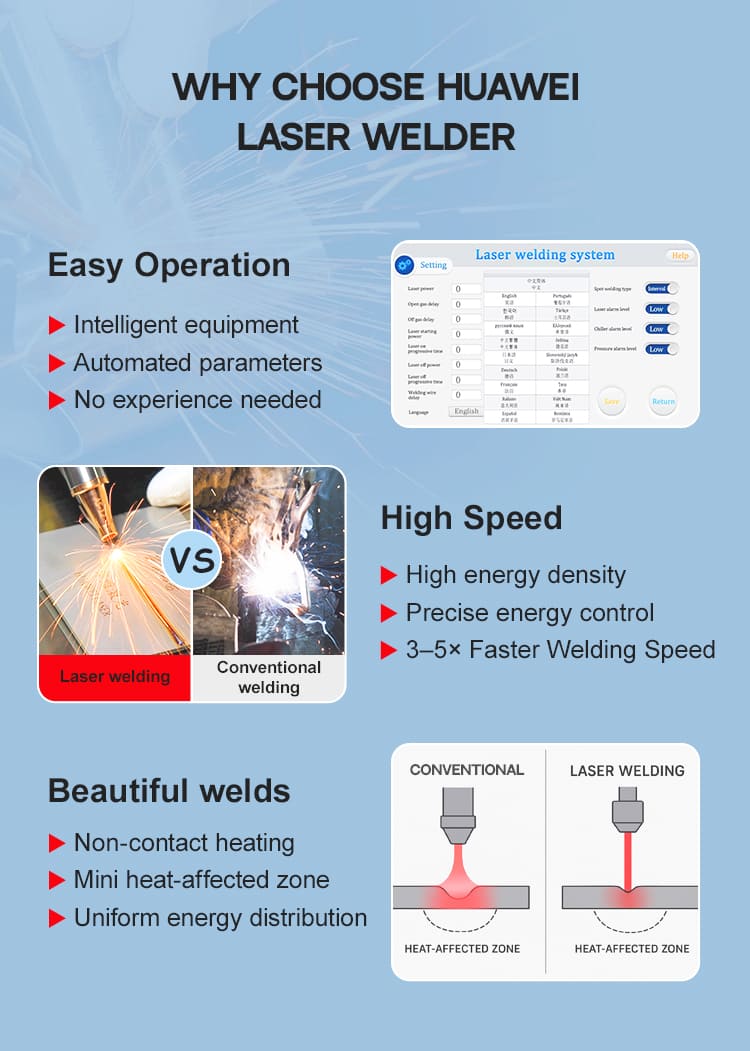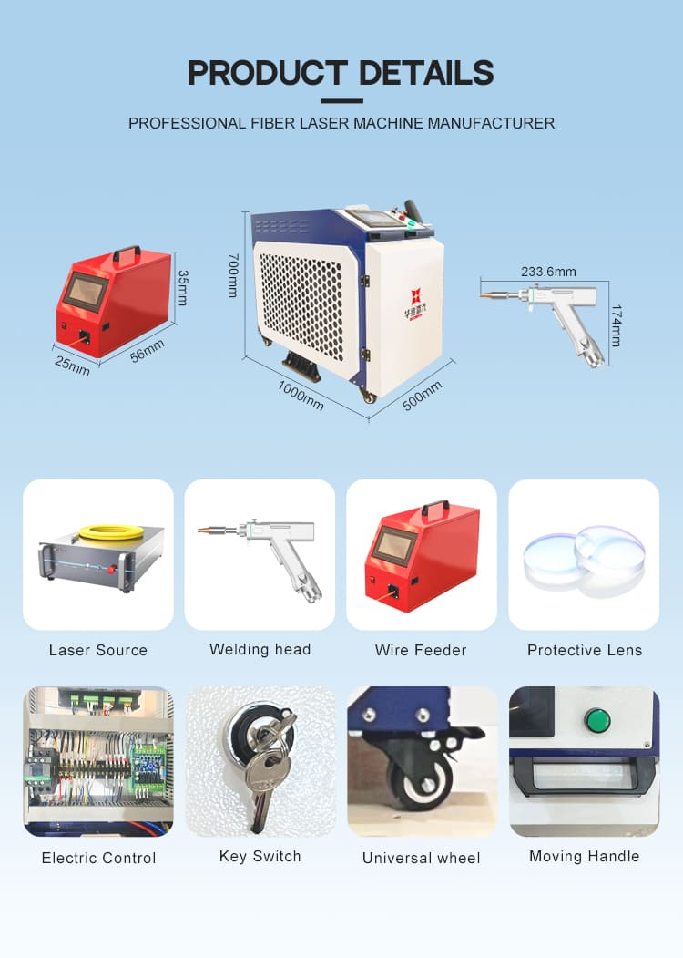 TheHUAWEI LASER 1500W 2000W 3000W joustava kädessä pidettävä laserhitsauskoneon monipuolinenKädessä pidettävä laserhitsauskonesuunniteltu sulavaan ja tehokkaaseen metallien hitsaukseen useissa eri sovelluksissa. HUAWEI LASER 1500W 2000W 3000W joustava kädessä pidettävä laserhitsauskonetarjoaa puhtaat hitsaussaumat, alhaiset lämpövääristymät ja luotettavat tehot valmistus-, korjaus- ja asennustehtäviin.