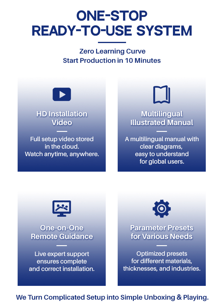 V: Teknikkomme on asentanut koneen ennen toimitusta. Joidenkin pienten osien asennuksessa lähetämme yksityiskohtaisen koulutusvideon, käyttöoppaan koneen mukana. 95 % asiakkaista voi oppia itse.